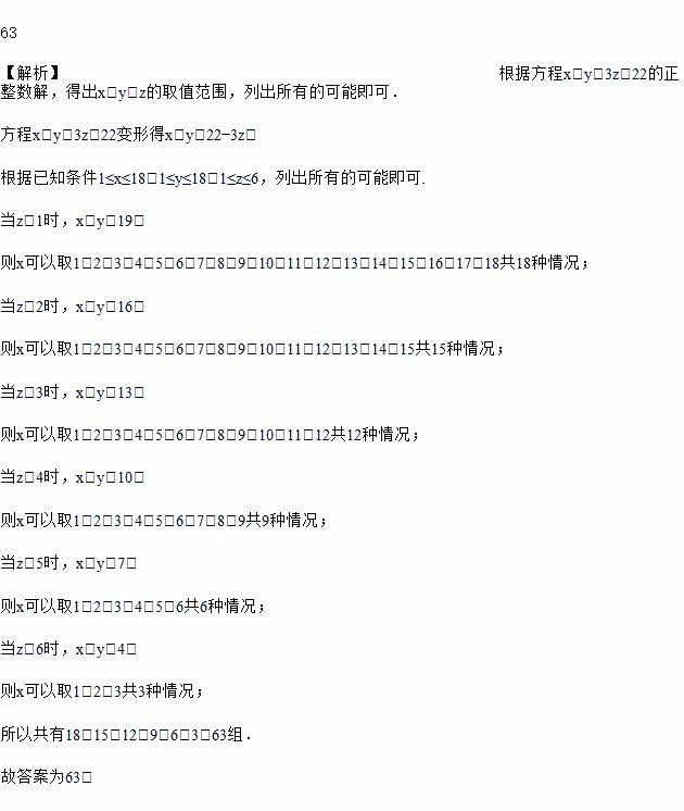 方程x+y+3z=22的正整数解的组数是______ .