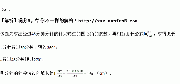 挂钟分针的长10cm,经过45分钟,它的针尖转过的弧长是 cm.