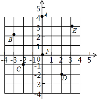 £¨2£©¸÷µãµÄ×ø±êΪ£ºA£¨0£¬4£©£¬B£¨-3£¬2£©£¬C£¨-2£¬-1£©£¬E£¨3£¬3£©£¬F£¨0£¬0£©£®