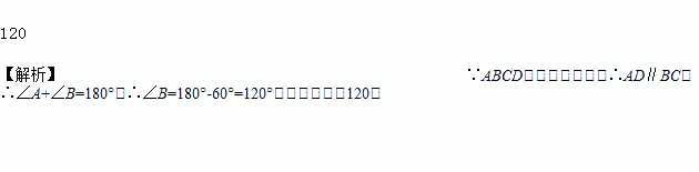 在□ABCD中,如果 ∠A=60°,那么∠B=_________°.