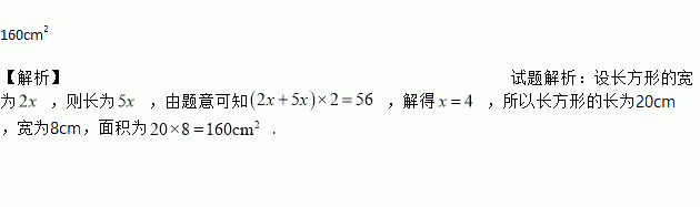 160cm2 【解析】试题解析:设长方形的宽为 ,则长为 ,由题意可知 ,解得 ,所以长方形的长为20cm,宽为8cm,面积为 .