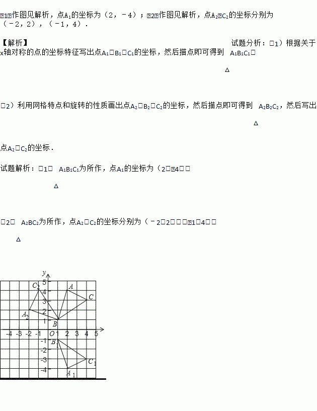 (2)请画出△ABC绕点B逆时针旋转90°后的△A2BC2,并写出点A2、C2的坐标.