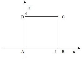 解:(这是开放题,答案不唯一)以AB所在的直线为x轴,AD所在的直线为y轴,并以点A为坐标原点,建立平面直角坐标系如图所示,则点A、B、C、D的坐标分别是(0,0)、(4,0)、(4,4)、(0,4).