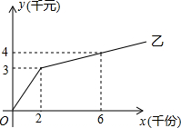 乙厂的印刷费用y(千元)与书面材料数量x(千份)的函数关系图象如图所示.