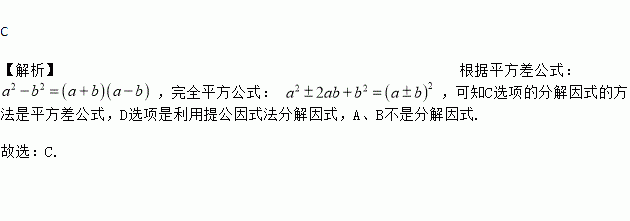 下列各式从左到右的变形中,是用公式法分解因式的是( )