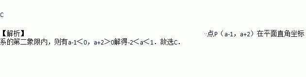 已知点P(a﹣1,a+2)在平面直角坐标系的第二象限内,则a的取值范围在数轴上可表示为( )