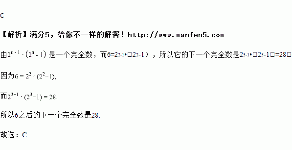 如果一个数等于它的不包括自身的所有因数之和,那么这个数就叫完全数,例如,6的不包括自身的所有因数为1,2,3,且6=1+2+3,所以6是完全数;大约2200多年前,欧几里德提出:如果2n﹣1是质数,那么2n﹣1(2n﹣1)是一个完全数,请你根据这个结论写出6之后的下一个完全数是( )