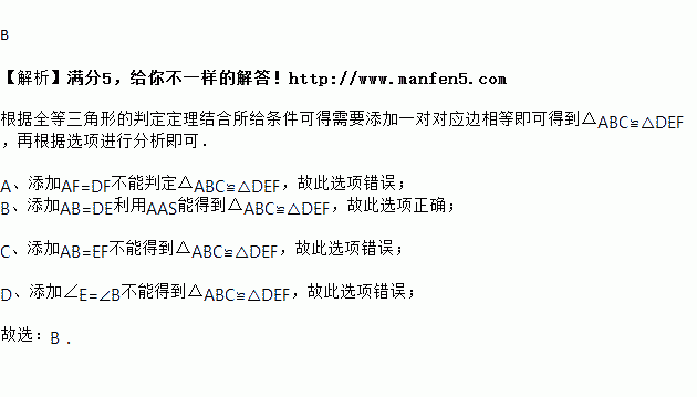 A. AF=DF B. AB=DE C. AB=EF D. ∠B=∠E
