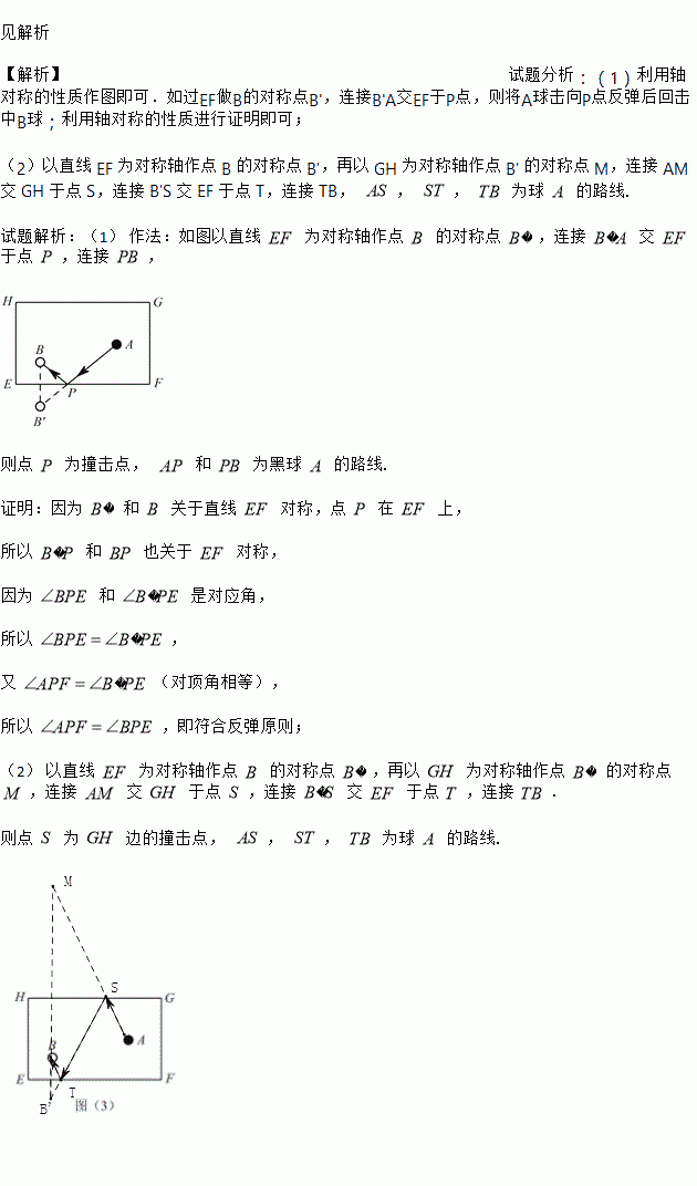 的路线图,标出撞击点,并简单证明所作路线是否符合反弹原则.