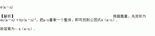 4x(m-n)+8y(n-m)2中各项的公因式是________.