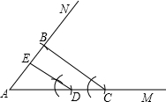 分析:任作∠MAN,在边AM上截取AC=b,AD=c,在边AN上截取AB=a,连接BC,作∠ADE=∠ACB,再由公共角相等,得到三角形AED与三角形ABC相似,由相似得出已知的比例式,可得出AE即为所求的x.