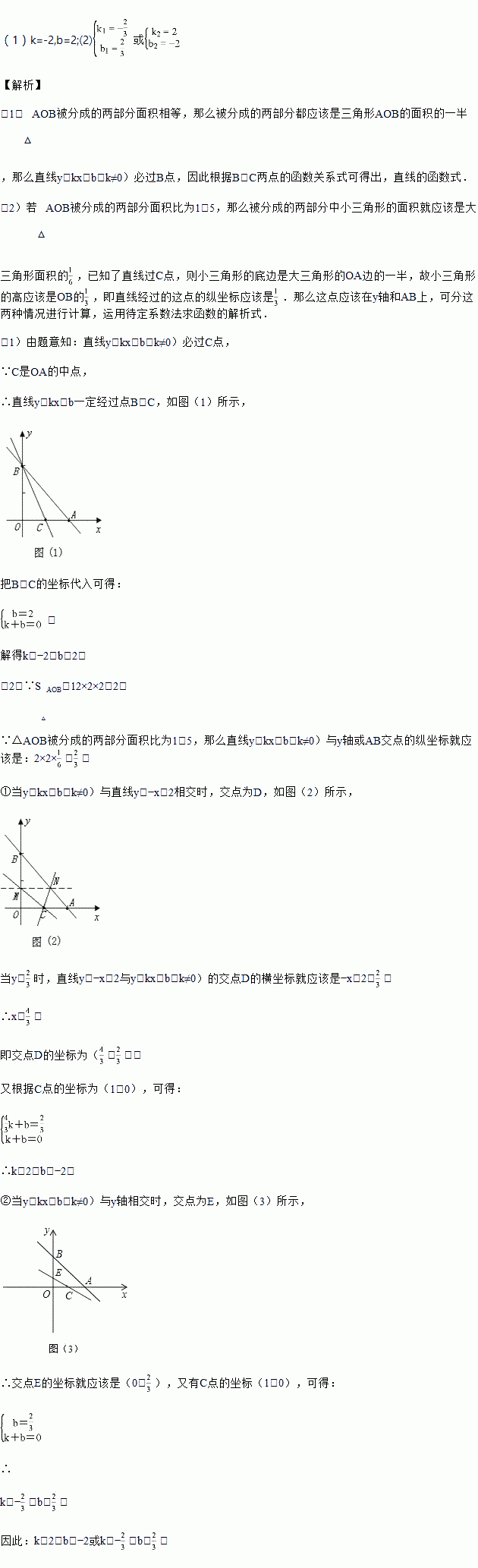 如图,已知直线与轴、轴交点分别为、,另一直线经过,且把分成两部分.