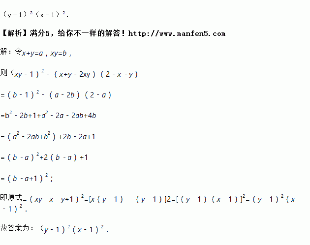 分解因式(xy﹣1)2﹣(x+y﹣2xy)(2﹣x﹣y)=_____.