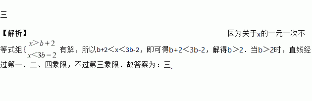 有解,则直线y=﹣x+b不经过第________ 象限.