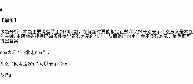 如果60m表示“向北走60m”,那么“向南走20m”可以表示为( )