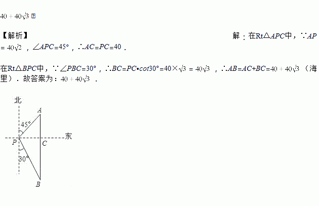 如图,一艘海轮位于灯塔P的东北方向,距离灯塔海里的A处,它沿正南方向航行一段时间后,到达位于灯塔P的南偏东30°方向上的B处,则海轮行驶的路程AB为______海里(结果保留根号).