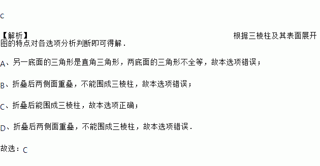 下列图形中,能通过折叠形成一个三棱柱的是( )