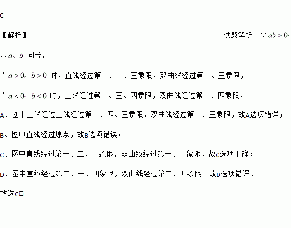 若ab>0,则函数y=ax+b与(a≠0)在同一直角坐标系中的图象可能是( )
