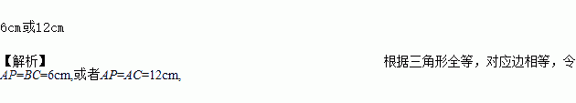 如图,在Rt△ABC中,∠C=90°,AC=12 cm,BC=6 cm,一条线段PQ=AB,P、Q两点分别在AC和过点A且垂直于AC的射线AX上运动,要使△ABC和△QPA全等,则AP=___________