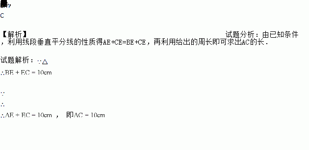 如图,在△ABC中,BC=8cm,AB的垂直平分线交AB于点D,交AC与点E,△BCE的周长等于18cm,则AC的长等于( )