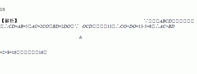 如图,□ABCD的对角线交于点O,且AB=5,△OCD的周长为13,则□ABCD的两条对角线长度之和为________.