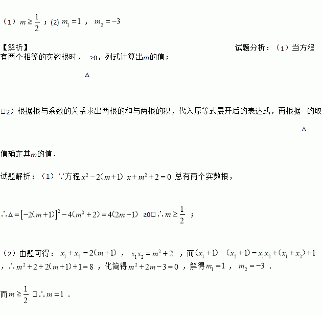 (1)若方程总有两个实数根,求的取值范围;