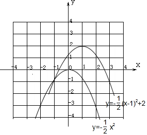 ∴将函数y=-$\frac{1}{2}$x2的图象向上平移2个单位,再向右平移1个单位,得到抛物线的解析式为y=-$\frac{1}{2}$(x-1)2+2,