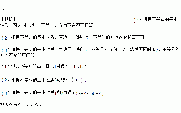 若a<b,用“<”或“>”填空: