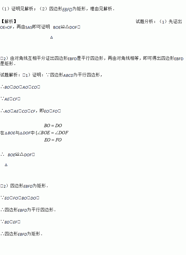 (2)若BD=EF,连接DE、BF,判断四边形EBFD的形状,并说明理由.