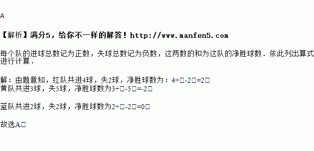 足球循环赛中,红队胜黄队4:1,黄队胜蓝队2:1,蓝队胜红队1:0,则下列关于三个队净胜球数的说法正确的是( )