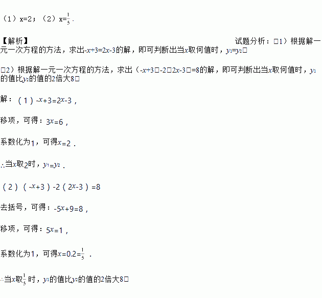 (2)当取何值时,的值比的值的2倍大8.