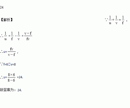 一根蜡烛在凸透镜下成一实像,物距,像距和凸透镜的焦距满足关系式: .若=6厘米, =8厘米,则物距= ___________厘米.