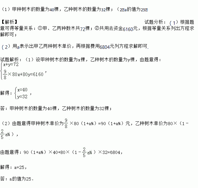 ,且乙种树木每棵80元,共用去资金6160元.