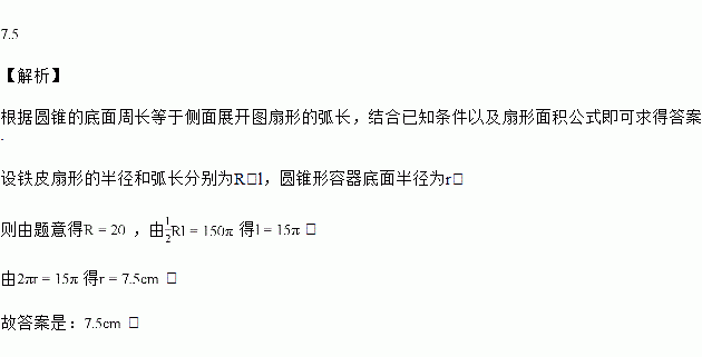 的扇形铁皮,制作一个无底的圆锥不计接头损耗![]()