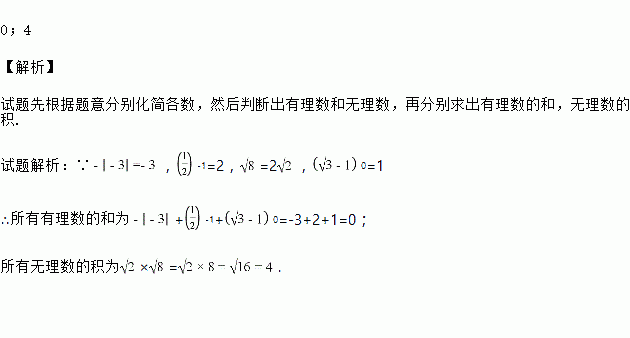 在,,-1,,0中,求所有有理数的和及所有无理数的积.