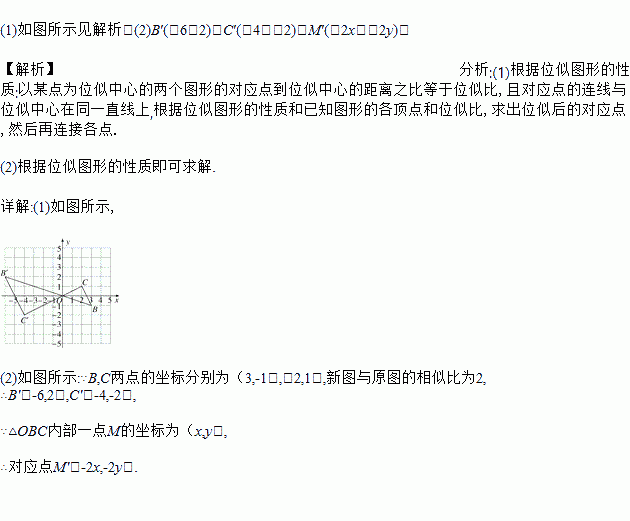 (2)如果△OBC内部一点M的坐标为(x,y),写出B,C,M的对应点B′,C′,M′的坐标.