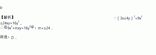 已知9x2﹣mxy+16y2能运用完全平方公式分解因式,则m的值为( )