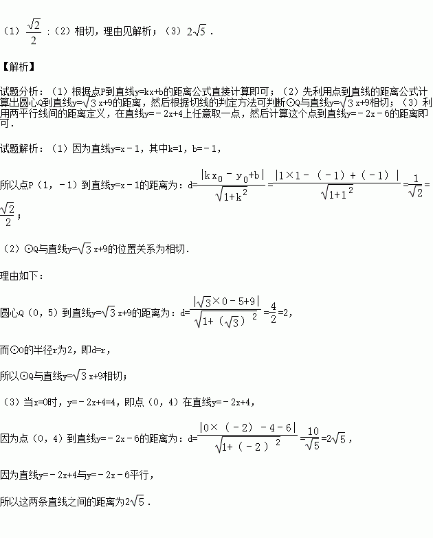 (1)求点P(1,﹣1)到直线y=x﹣1的距离;