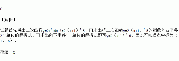 在同一平面直角坐标系内,将函数y=2x2+4x﹣3的图象向右平移2个单位,再向下平移1个单位得到图象的顶点坐标是( )