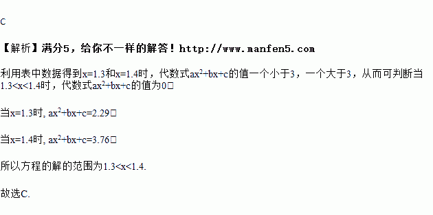 判断关于x的方程ax2+bx+c=3的一个解x的范围是( )