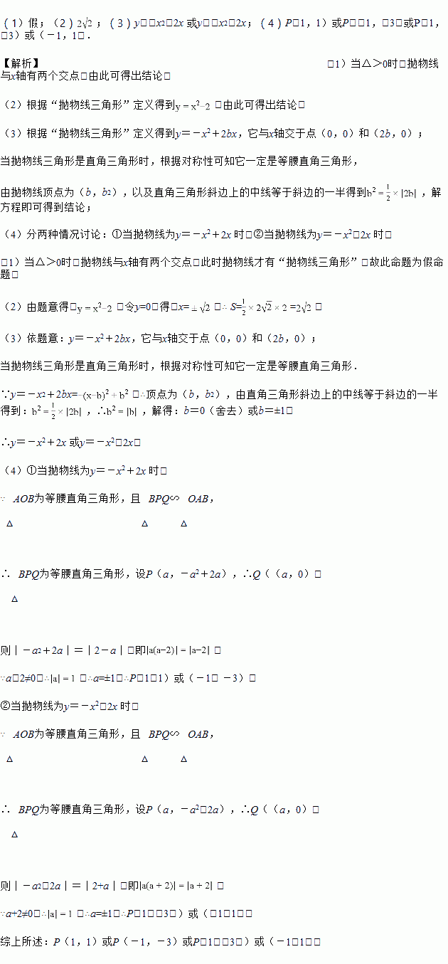 £¨1£©ÈÎÒâÅ×ÎïÏß¶¼ÓС°Å×ÎïÏßÈý½ÇÐΡ±ÊÇ______£¨Ìî¡°Õæ¡±»ò¡°¼Ù¡±£©ÃüÌ⣻