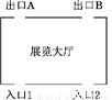 某展览大厅有2个入口和2个出口,其示意图如图所示,参观者可从任意一个入口进入,参观结束后可从任意一个出口离开.小明从入口1进入并从出口A离开的概率是( )