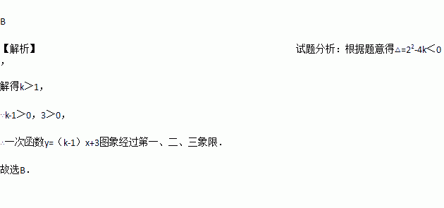 若关于x的一元二次方程x2+2x+k=0没有实数根,则一次函数y=(k﹣1)x+3的图象经过()