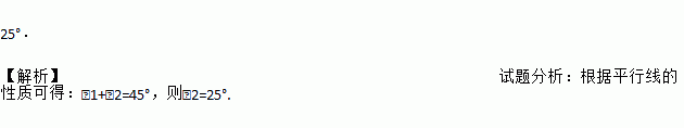 如图,把一块含有45°角的直角三角板两个顶点放在直尺的对边上,如果∠1=20°,则∠2的度数是_______ .