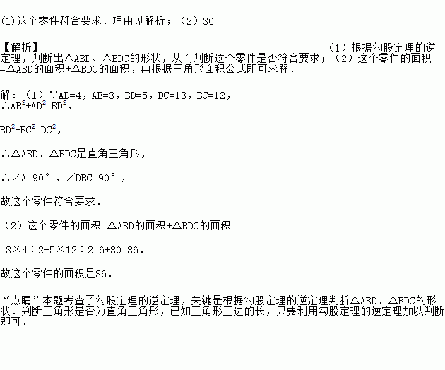 一个零件的形状如图1所示,按规定这个零件中∠A和∠DBC都应为直角.工人师傅量得这个零件各边尺寸如图2所示.