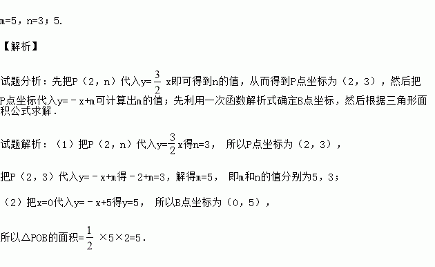 如图,一次函数y=﹣x+m的图象和y轴交于点B,与正比例函数y=x图象交于点P(2,n).
