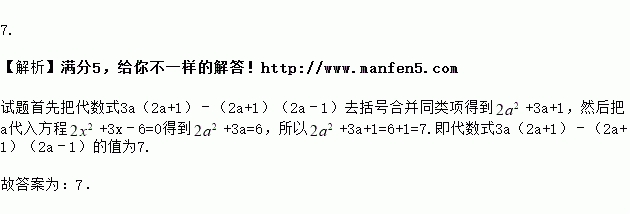 已知a是方程+3x﹣6=0的一个根,则代数式3a(2a+1)﹣(2a+1)(2a﹣1)的值为 .