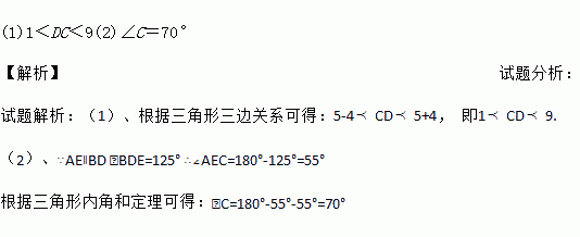 (2)若AE∥BD,∠A=55°,∠BDE=125°,求∠C的度数.