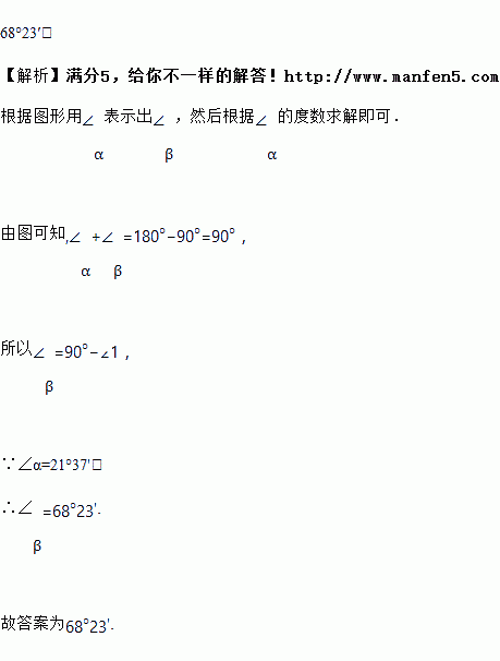 一副三角板按如图方式摆放,若∠α=21°37',则∠β的度数为_____.