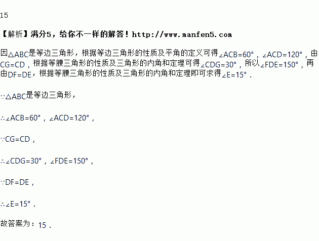 如图,已知△ABC是等边三角形,点B,C,D,E在同一直线上,且CG=CD,DF=DE,则∠EFD=__________°.